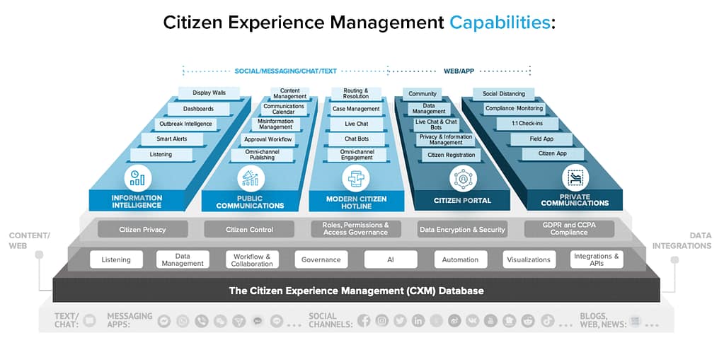 Sprinklr is a New York based CXM/CRM solution provider. Recently, Spriklr has been focusing on Customer Experience Management for Governments to manage their fight against the pandemic. The platform is currently trying to leverage social media platforms and connecting with their existing customer experience tools to create a wider communication and networking base. Here is how their stack looks like: